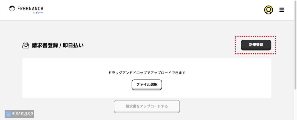 請求書の登録は、マイページトップの請求書欄にある「新規登録」から行います。
