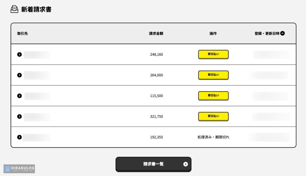 「即日払い」の利用には、請求書の登録が必要です。